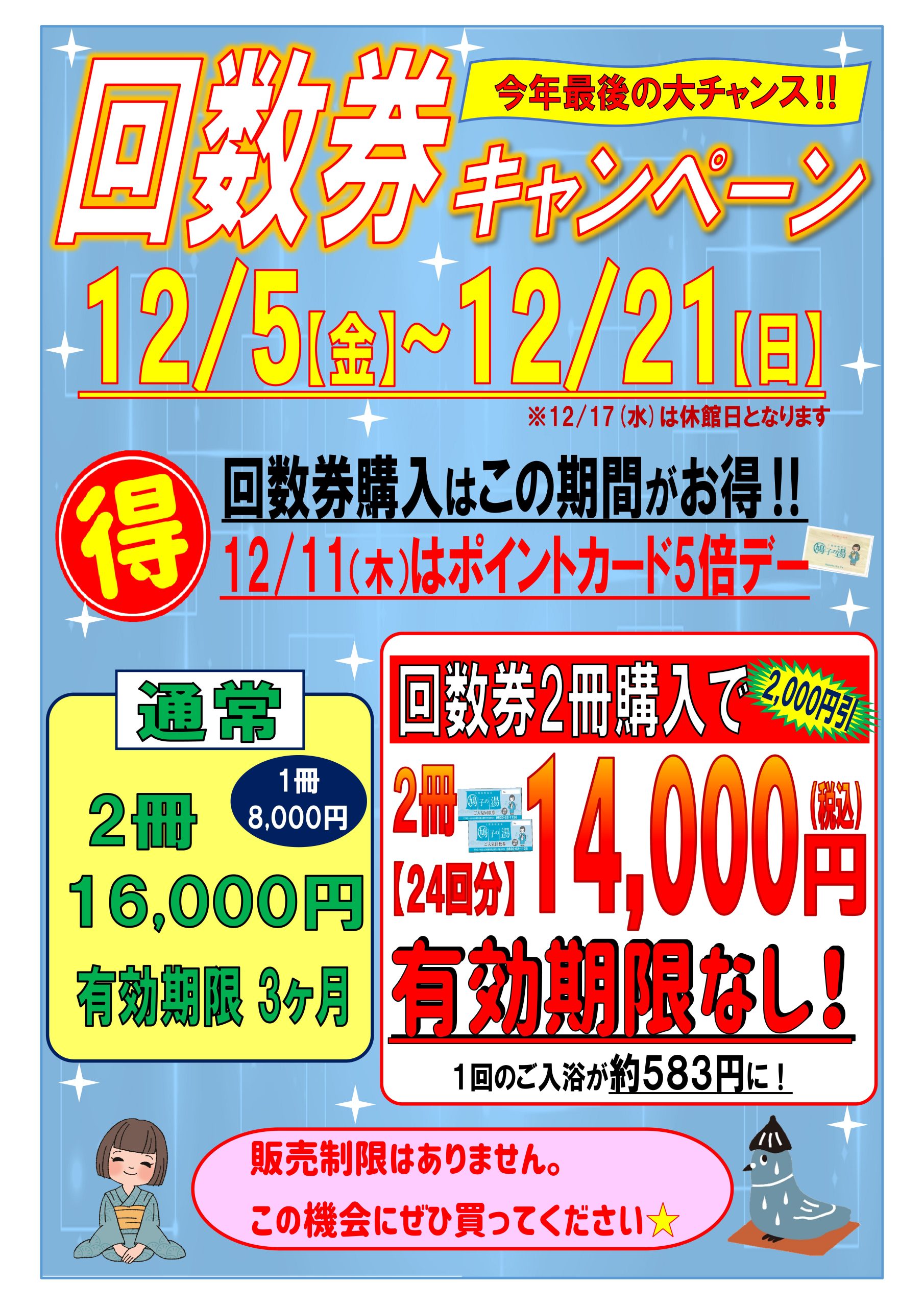 今年最後の大チャンス★『回数券キャンペーン』開催決定‼