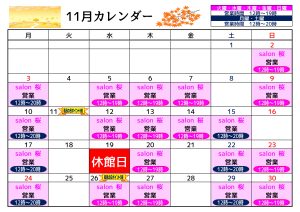 11月より「salon 桜」の営業時間変更のお知らせ♪