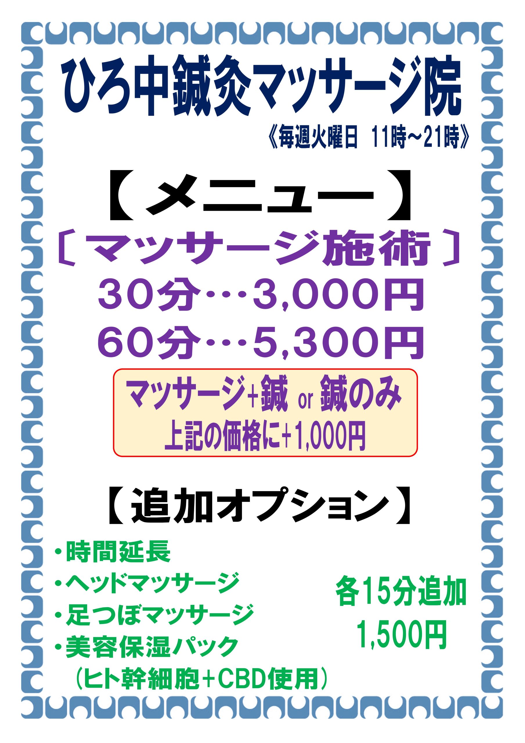 ひろ中鍼灸マッサージ院!毎週火曜日営業中‼